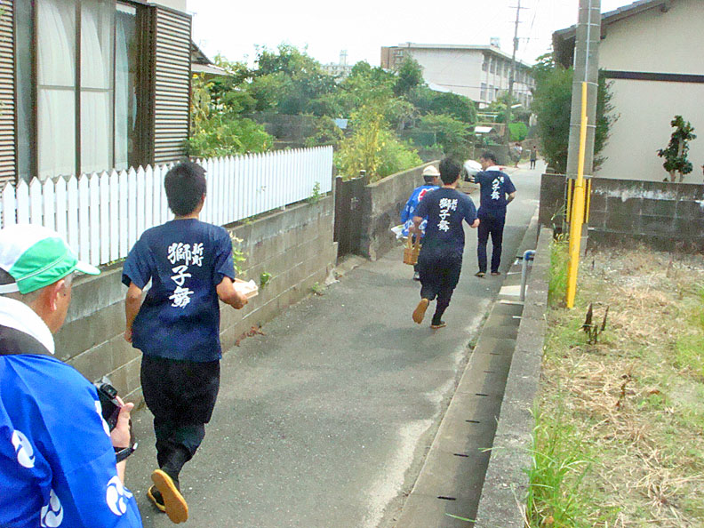 午前8時半頃に始まり、帰ってくるのは午後4時台。神殿で獅子を振り、獅子舞は完了します。